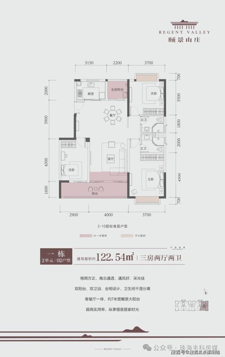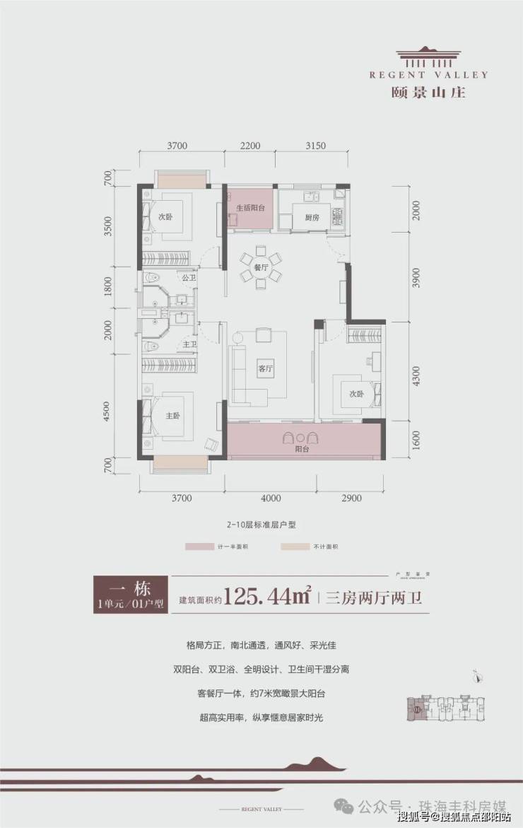 高赠送率、户户南北通透:小高层近95%实用率,公摊少、赠送多,高拓空间,性价比之王,户户南北通透,清风对流;4m客厅开间明朗,三面朝阳设计,延伸生活的幸福尺度