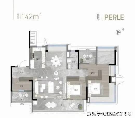 建面约142平方米户型:货量最多,独梯独户板式设计,三面采光,餐客厅和主卧南北对流。