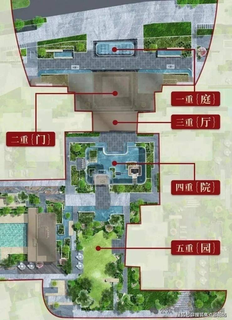 从入口开始,匠造中轴对称“玺”级五重归家礼序:循黑金奢阔前庭而入,登约68米仪仗阵列大门,穿行亲水藏趣庭院,拾级而上,央景中心园林豁然铺展。