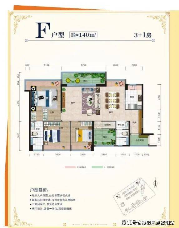 :带有独立入户花园,方便收纳鞋子、童车等 。位于楼栋单边位,实现南北对流,江风常伴,室内常年舒适 。