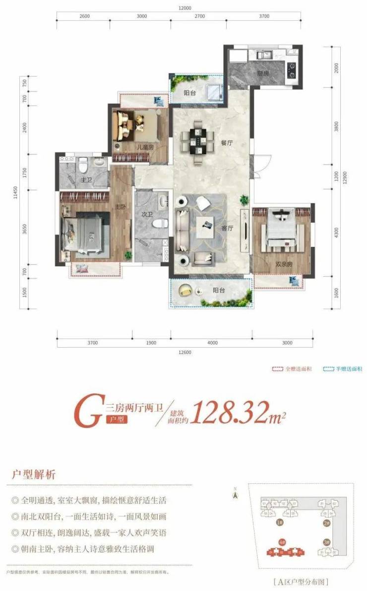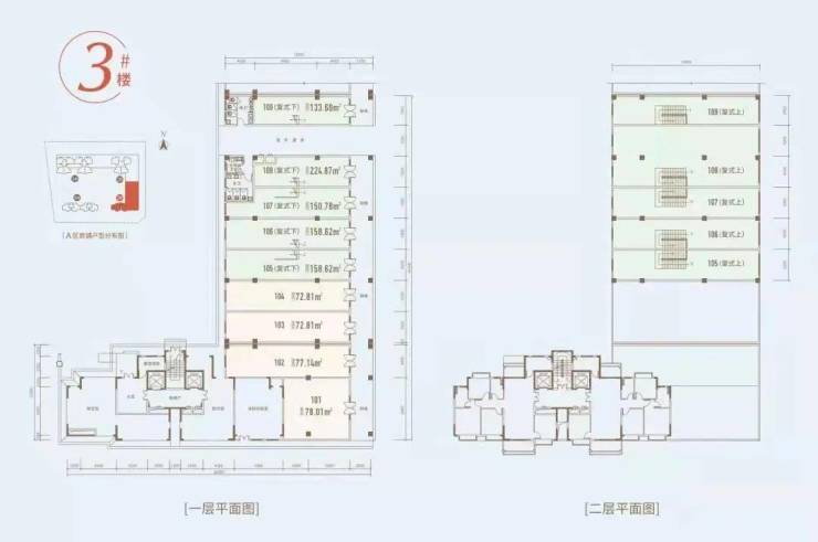 A区共4栋小高层,296套住宅,2#3#楼已售罄。1#楼(18层)和4#楼(16层)在售,约102/104㎡三房两厅一卫和约115/128㎡三房两厅两卫。