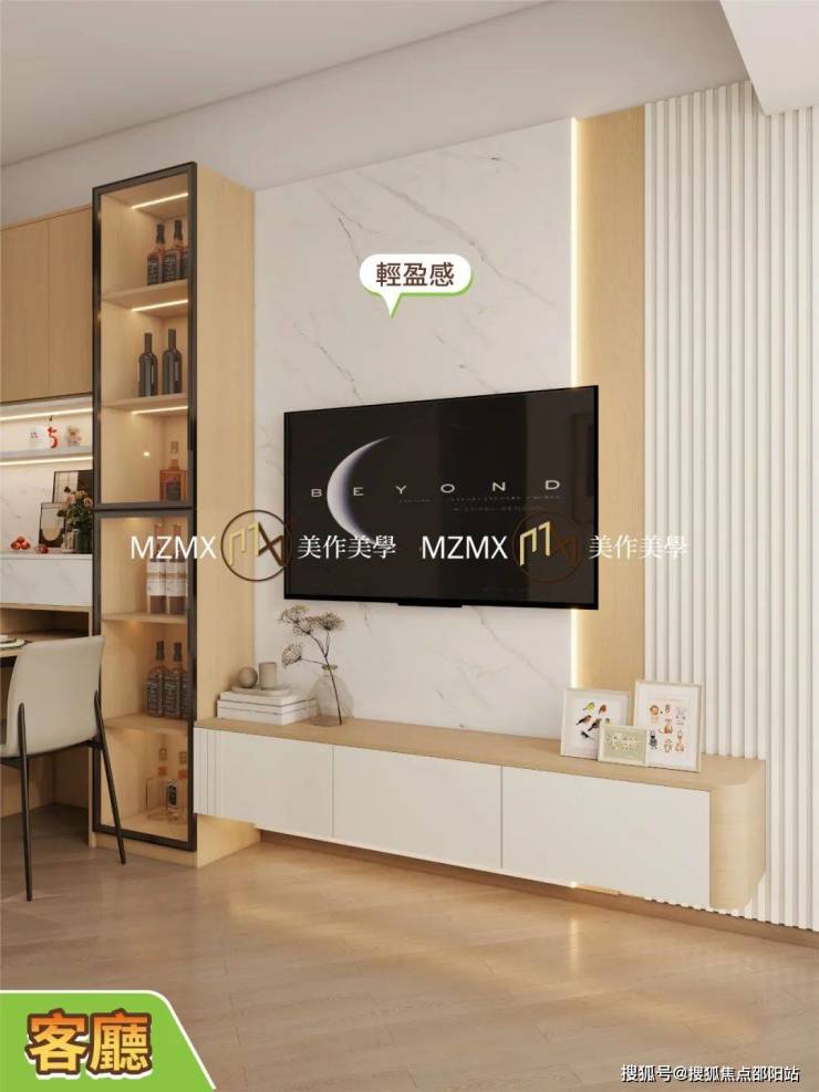封閉式櫃桶收納電視遙控、遊戲機等雜物,保持客廳整潔;開放式層架可以擺裝飾,仲有暗藏燈帶,夜晚開燈好有氛圍,朋友嚟訪絕對嘩然!