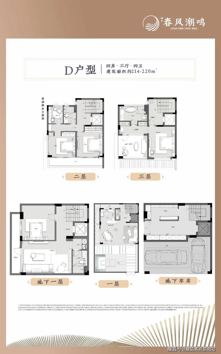 鸿升春风潮鸣D户型214~220㎡四房三厅四卫
