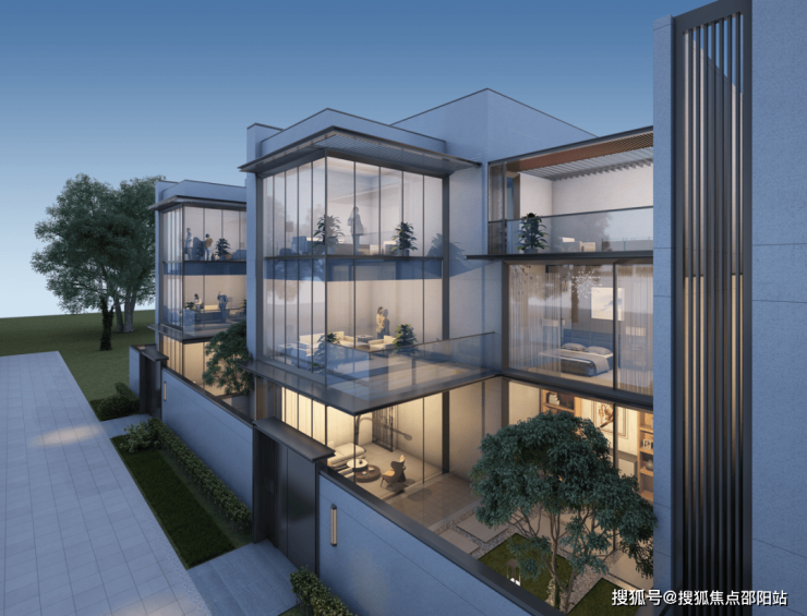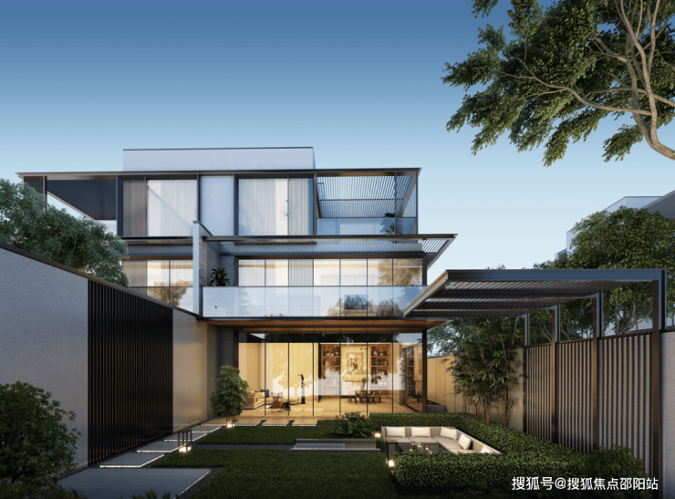 部分戶型規劃為下沉式庭院,打造雙層院落,以及配有前後花園,有天有地,舒適生活由此起。
