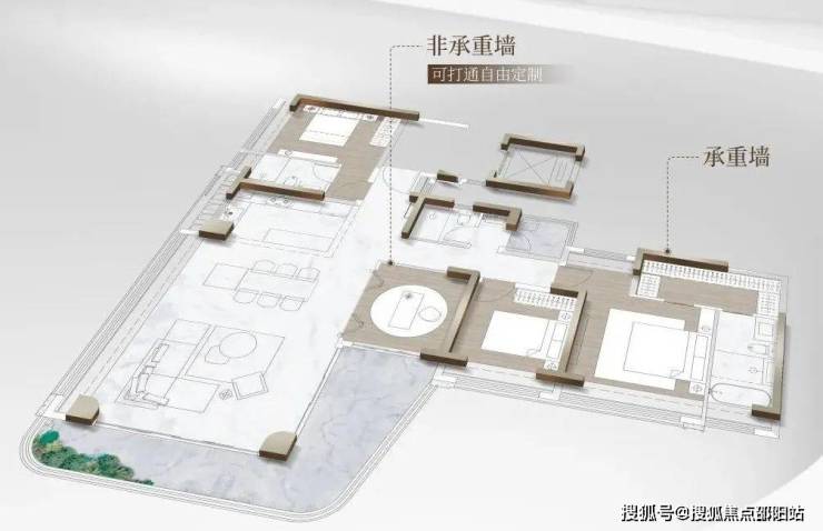 创新性建筑骨架布局,内部空间无明柱、极少承重墙,可随意实现空间打通定制,复刻游艇式空间定制主义精神,满足对生活的随心所享。