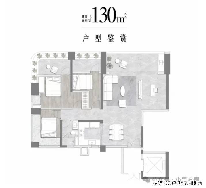 130㎡三房两厅两卫是入门款,总价约 700 万,全明格局设计,客厅连接南向阳台,主卧带独立卫浴,适合三口之家。