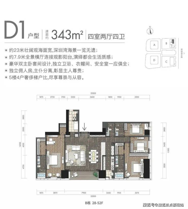 深圳湾沿岸三座标志性高楼巍然屹立,分别是春笋大厦(390米)、莱佛士酒店(350米)以及本项目(305米),彰显了其作为城市地标的独特价值。此外,本项目坐落于深圳湾一线滨海区域,享有无可比拟的居住优势,在整个深圳湾片区内堪称独一无二的理想居所。
