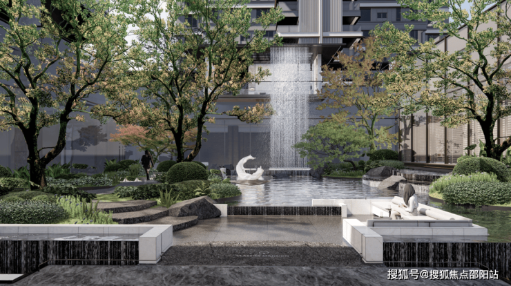项目特邀全球顶尖团队——POWER5雕琢园林,上游打造“一脉十园”东方精奢园林,下游定制约600平琉璃光苑,更引约10米巨幕飞瀑吞吐其中。