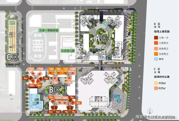 项目获建的三个地块,分别是珑湾世界花园、珑湾上城花园、珑湾时代公寓,涵盖了住宅、商务公寓、办公及裙楼商业等,另外位于地块中间还规划了一所27班九年一贯制学校及一所九班幼儿园。