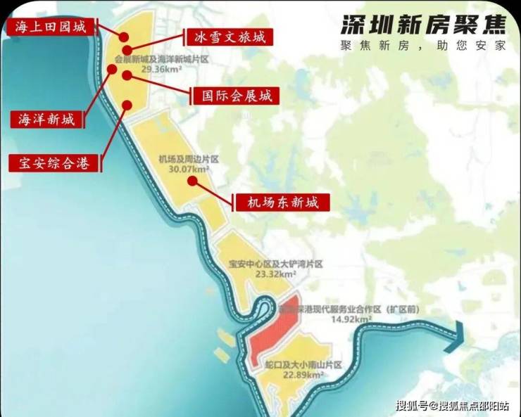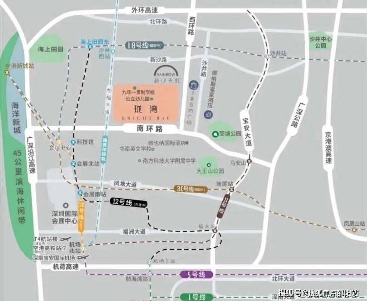 周边环绕着西部最值得期待的项目,西边3公里范围内有海洋新城、国际会展中心、冰雪文旅城、海上田园等等重磅规划,东侧有华润金蚝小镇、平安高科技城等旧改巨头。