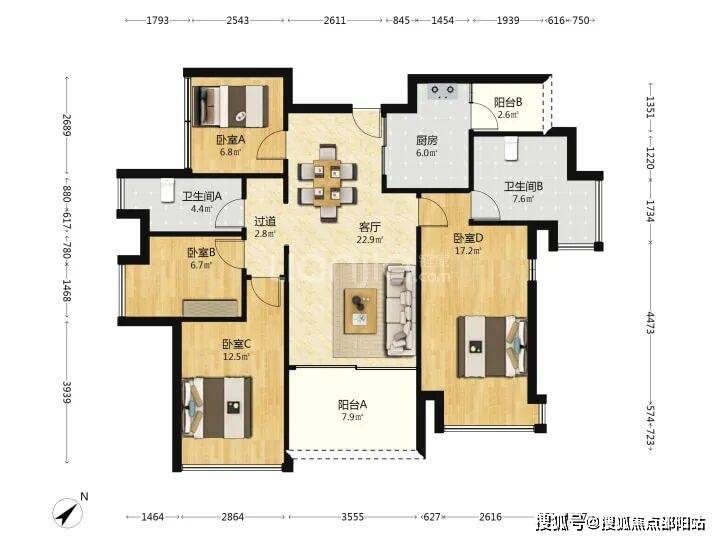 小区:前海东岸·127㎡·南北通透4房2卫;
