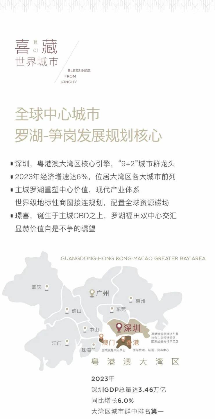 从隽永建筑到奢阔空间,从云端风光到典雅家居,从质感非凡的公区功能空间到高度定制化的服务,再到栖居其中的整座理想之城,【城脉中心·璟喜】,汇集尖端设计与资源构筑而成的,兼具绝无仅有的精神视角与建筑高度,将整个城市CBD的生命与活力尽收眼底。在兼得过去与未来的城市景象中,收藏属于深圳、属于中国的澎湃盛景。