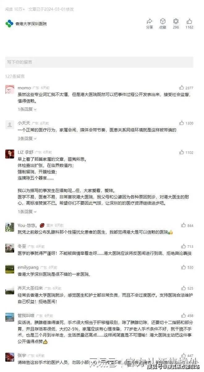 其中港大医院口碑近期越来越不错,就在前面几天某女士医疗事件,港大医院正面回应,收获了10w+个阅读和非常多的点赞。