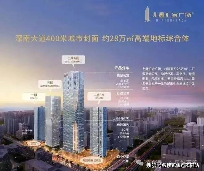 兆鑫汇金广场,深南大道封面头排地标,以其262米的屹立于深南大道。