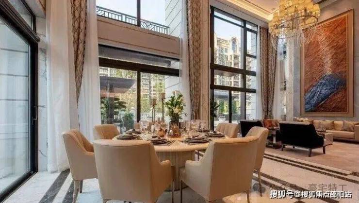 全屋葡萄牙米黄石铺盖,大师原石雕刻;会客厅7.2m挑高,三面落地玻璃窗高采光,通透阳光负一层