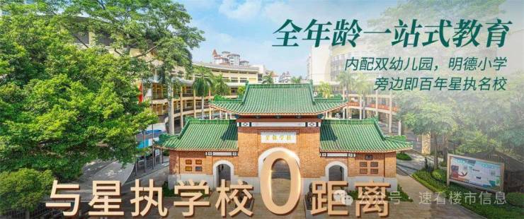 项目旁边就是省一级星执学校(私立的九年一贯制学校),小区内更是配套明德广地实验学校(原培正中学分校,九年制的包括中小学,只要是小区业主可以直接入读,学费2.4万/年)、两所优质幼儿园,全龄一站式教育资源,上学⽆烦忧,这些是私立学校。