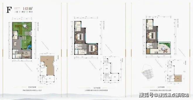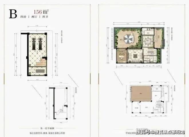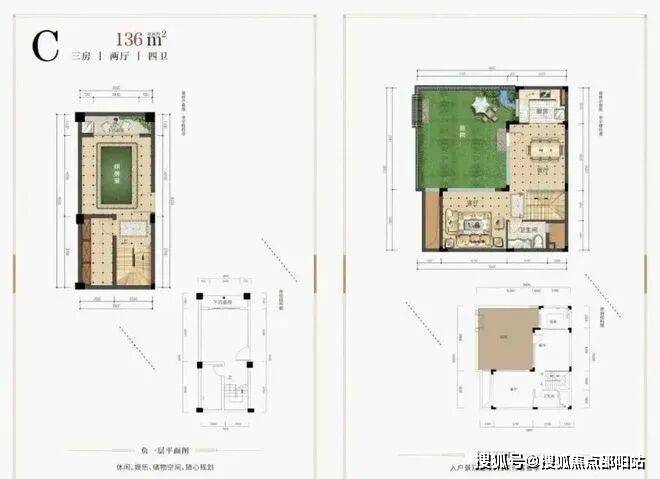 136㎡合院C户型户内庭院面积近60㎡,饱览天地的主庭院、一角风韵的下沉式庭院、情景交融的超大露台……各有情致,趣意盎然。