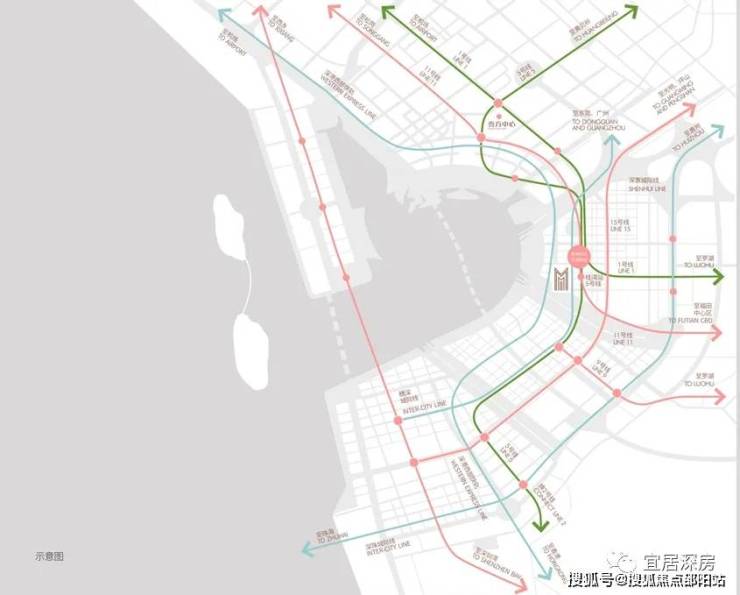 【 前海鸿荣源中心】位于前海桂湾核心地段,毗邻亚洲最大交通枢纽——前海综合交通枢纽,汇集 城际快线、地铁等便捷交通设施于一体,极速通达中心区。坐享“(+2+1”陆海空立体交通,优享前海口岸,迅速连接9+2湾区城市,构建1小时国际生活圈。