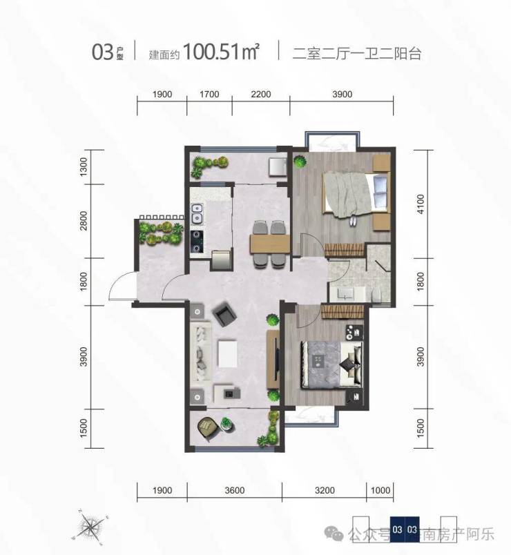 03户型丨建筑面积约100.51、100.73㎡