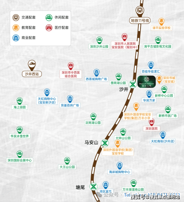 锦和玉鸣的交通配套极为完善。项目紧邻地铁11号线沙井站,步行仅需几分钟即可到达,无论是日常通勤还是周末出游,都能轻松抵达目的地。地铁11号线可直达机场东站、宝中、前海、南山高新园等核心区域,为居民提供了便捷的出行选择。此外,项目周边公交线路丰富,自驾路线也十分便捷,广深高速、外环高速等自驾路线可快速连接福田CBD、宝安机场等核心区域。未来,随着深中通道和穗莞深城际等跨珠江口通道的建设,沙井将成为深圳连接东莞、中山的枢纽,实现“1小时经济圈”的便利生活。