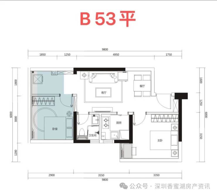 在售户型:约52-75㎡2-3房,位于B座45-46层高楼层,全屋高标精装配置齐全