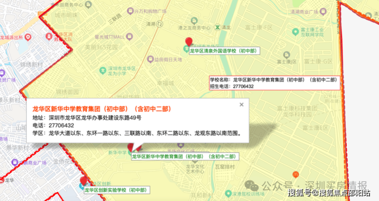 依据2025年龙华区教育局的学区划分方案,小学学区涵盖龙华第二实验学校华美校区及华仁华美校和华育校区;初中学区为龙华区清泉外国语学校初中部、龙华区新华中学教育集团初中二部、龙华区新华中学教育集团松和学校初中部、龙华区教育科学研究院附属外国语学校初中部。
