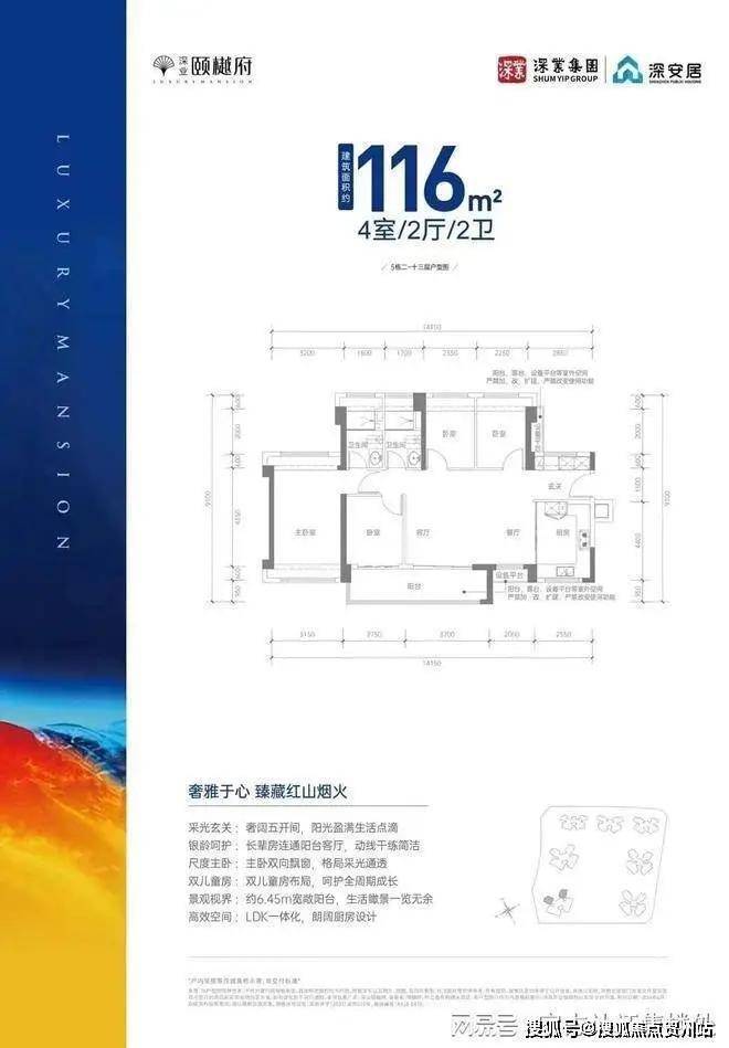 深业颐樾府二期《颐璟台》户型:深业颐樾府售楼处电话☎:400-150-5057建面约99-116㎡3-4房,品质雅宅!户型方正实用,户户朝南,舒适采光!宽景阳台揽胜云端,奢阔景观面!