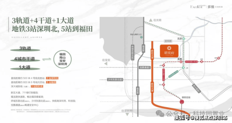 项目位于位于龙华区大浪街道龙坂大道与锦华南路交汇处,是卓越城市综合体项目内的住宅,其综合体包含商业、办公、酒店等项目。