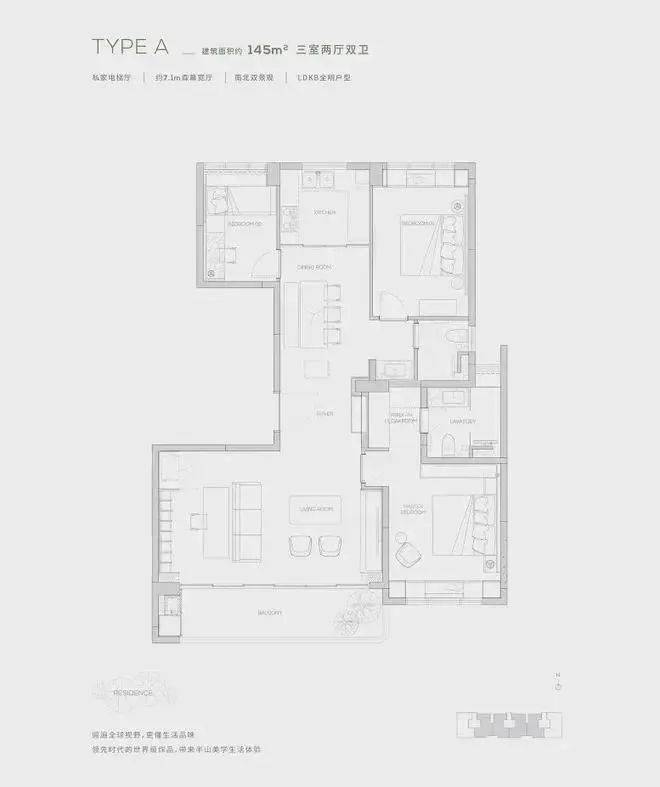 独享私家电梯厅-约7.1m²森幕宽厅-LDKB全明户型