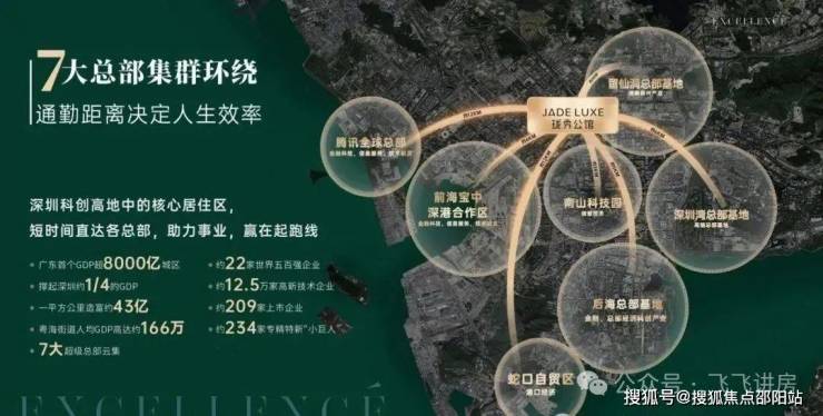 🎯三湾七总部 “黄金”通勤圈约3公里科技园、留仙洞总部基地;约4公里前海宝中深港合作区;约5公里后海金融总部基地;约6公里深圳湾超级总部基地;约12公里蛇口、腾讯全球总部⁽²⁾。