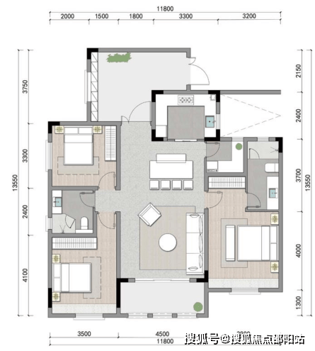 ·一体化客餐厨:约4.2米面宽,30.66㎡,布局灵活多变;