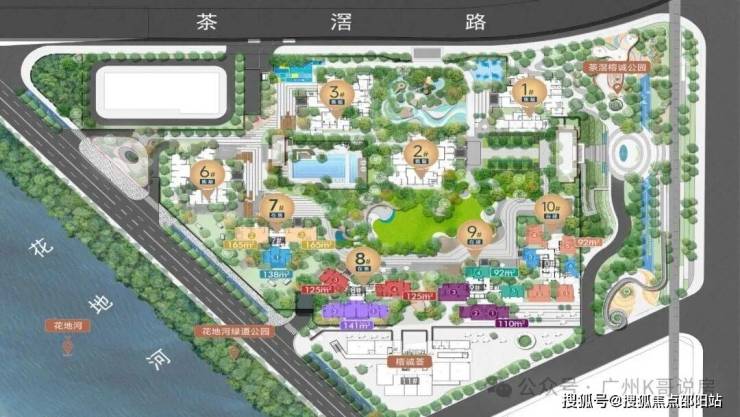 前排的8/9/10栋虽然视野开开阔,但南向看不到园林,且能看到一排高架线,未来在二手市场上会是一个比较大的抗性,不过能直面花地河,开阔的视野和景观会让人心旷神怡。