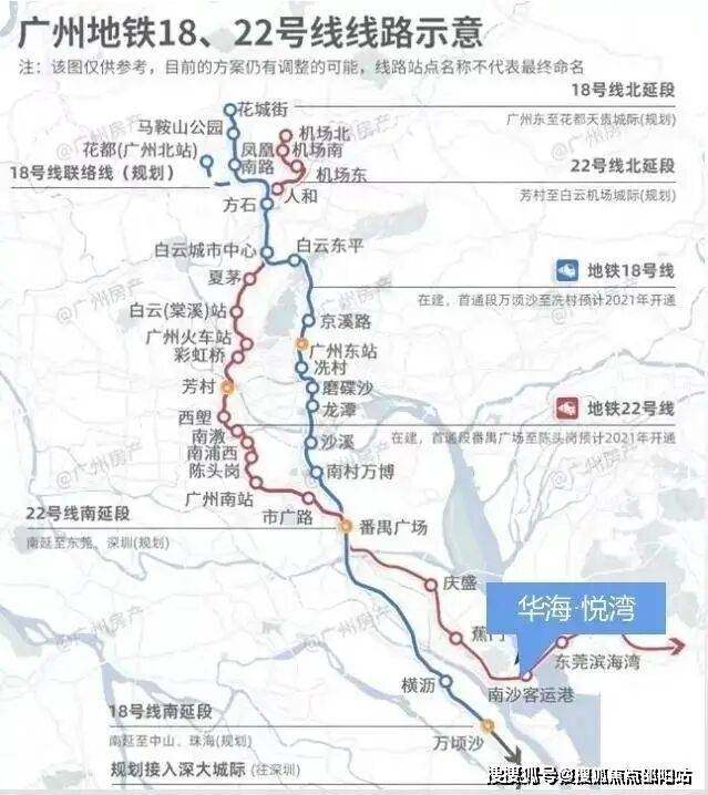 18号线(首段已通车):22号线、15号线无缝换乘地铁18号线,30分钟快速接驳天河,向南延伸至中山、珠海。