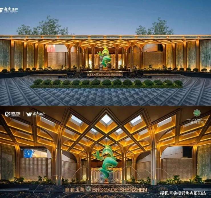 近51米,维多利亚绿宝石墙面,20根7米高香槟金立柱,绿城这次还是有点东西
