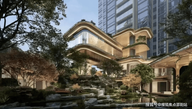 有一些江南亭台楼阁的感觉,跟以往常规沙井刚需盘的感觉不太一样,山石林泉相映,乌桕、红枫点缀四季!