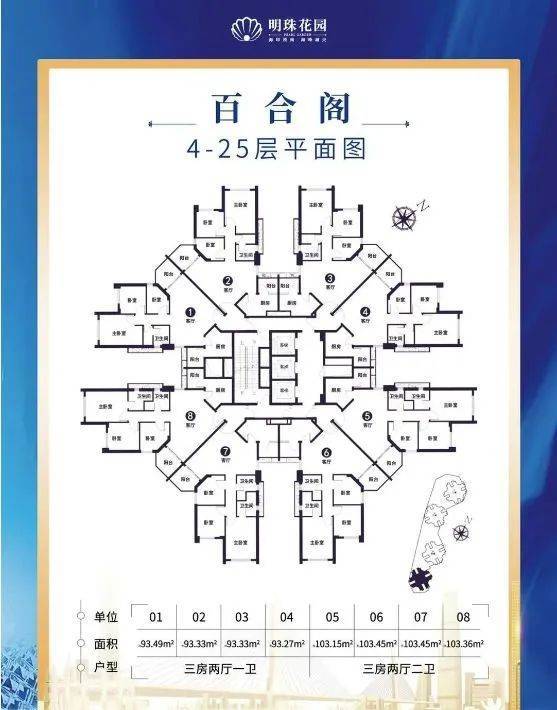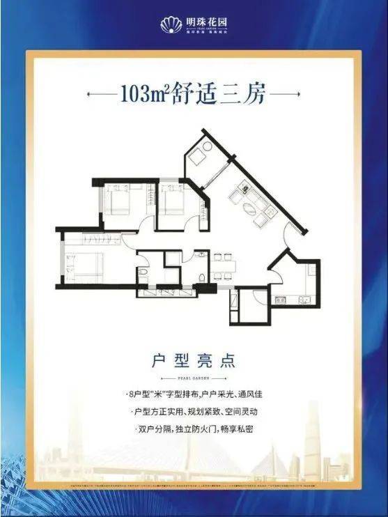 :项目聚焦于 93 - 103㎡的三房单位,虽未详细提及整体规模布局,但从产品定位来看,旨在为追求品质生活的家庭提供精致居住空间。8 户 “米” 字型布局,户户分隔,保障了每家每户的私密性。超 80% 的使用率,让空间得到充分利用,在海珠寸土寸金的区域,显得尤为珍贵。