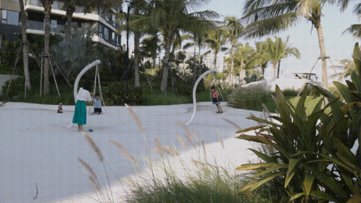 岸边有三棵原生的高大树木,它们曾见证着这片海域一轮又一轮的变迁,我们选择将其保留,并在树下增设充满艺术感的白色弧形座椅,供人们休憩闲谈,放空看海,与不断生长的场所谱写新的回忆。