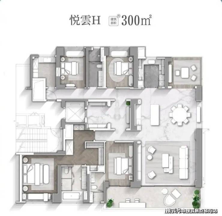 300㎡悦雲 H 户型:IMAX观景阳台,一梯一户设计,豪华主卧套房,为追求极致生活品质的人群量身定制。