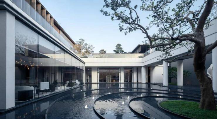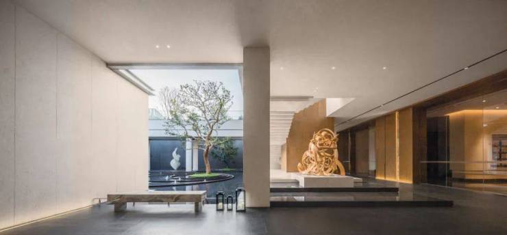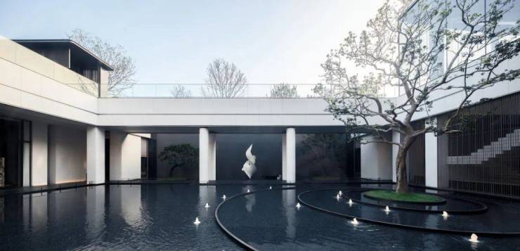 酒店式院落入口,归家的第一个庭院空间,形象的入口低调涵雅,以自然塑造艺术性空间体验,怀古博今。