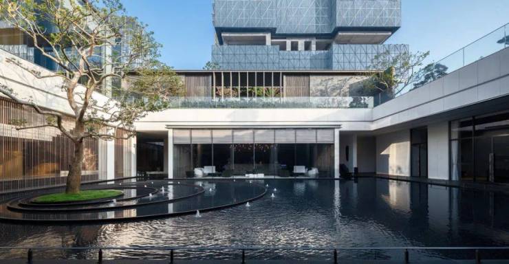 通过连廊串联、各院落既分又合、层次丰富,空间相互渗透,主次有序,实践粤式生活美学。浮桥穿行于庭院之上,漫步星云。