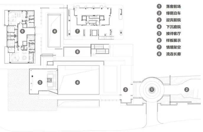 整体场景亦是参照中式长轴画卷的叙事方式线性立体展开,通过连廊及灰空间等虚实结合方式,营造出多维立体的参观动线。