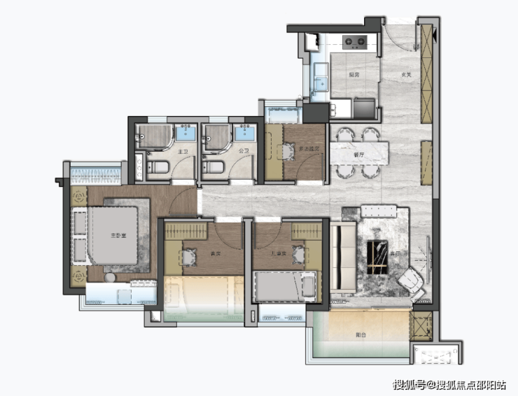 这个户型,有更富足的卧室面积,更加适合三胎进阶型家庭或者三代同堂。