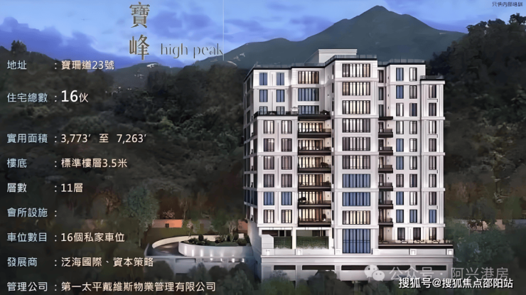 宝峰位于西半山宝珊道23号,是由泛海、德祥、资策合作发展的单栋式住宅大厦,楼高11层,仅提供16个实用面积为3,773-7,263尺的大户型豪宅单位。
