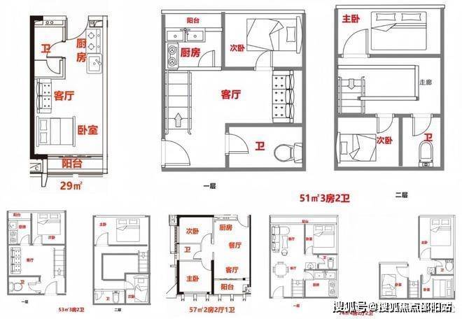 29㎡,大单房,90万起 57㎡2房1卫220万