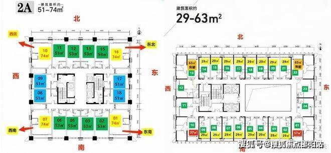 2A座,层高4.5米,建面有约51㎡、53㎡、75㎡三种户型,单价36888元/㎡起、总价约188万元起。