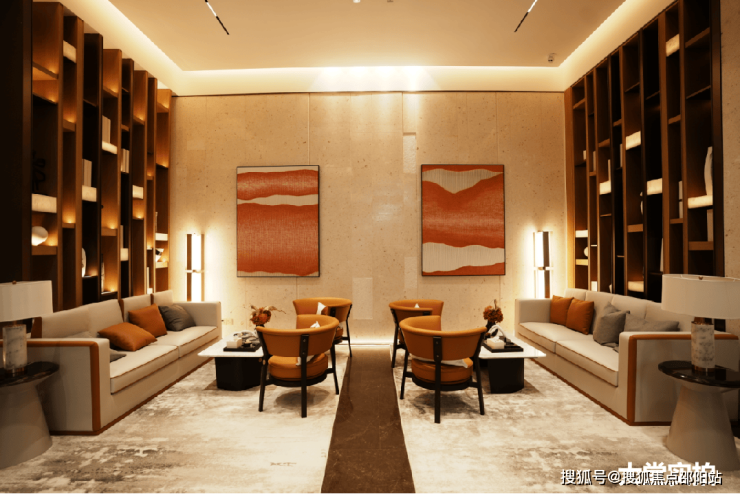 华润悦府、万科瑧系高端项目设计团队,负责大堂设计;空间尺度阔绰,约100㎡,与高端豪宅同等面积尺度;