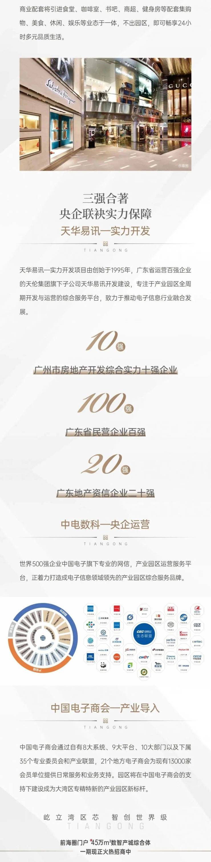 天弓智慧城位于粤港澳大湾区的核心交通枢纽城市,中山市翠亨新区——深中通道首站登陆点马鞍岛由天华易讯投资超三十亿元开发建设,是一个约45万平方米产城融合的大型科技产业园区 项目与央企中国电子集团联合运营,同时与中国电子商会运营合作中。