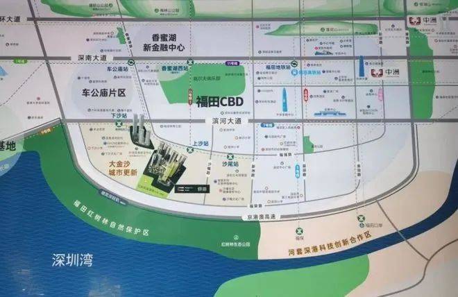 深圳中洲湾迎海二期位于福田区沙头街道上沙社区,地处福田大金沙片区。该片区是目前整个福田区域内城市更新地块最大的区域,包括了沙尾村、沙嘴村、上沙村、下沙村,政府投入了300亿进行规划,后续将规划总建面350万㎡的住宅和412万㎡的产业空间。这一区域是深圳核心区域内目前唯一一个产城一体化的城市更新单元,具有巨大的发展潜力。