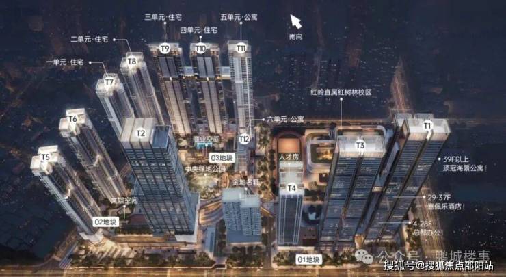 楼层总高:03地块 T7/T8 (1/2 单元53层)60 层高,T9/T10 栋 (3/4 单元46层) 5单元45层。6单元15层 ,02地块T5(2单元)59层,T6(3单元)58层单层高:住宅112-125㎡3.05米,183-253㎡-3.3米,270㎡3.5米,公寓3.5米/3.6米