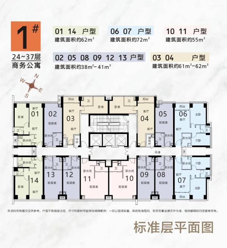 在售公寓户型:约38-41-55-61-63-73㎡